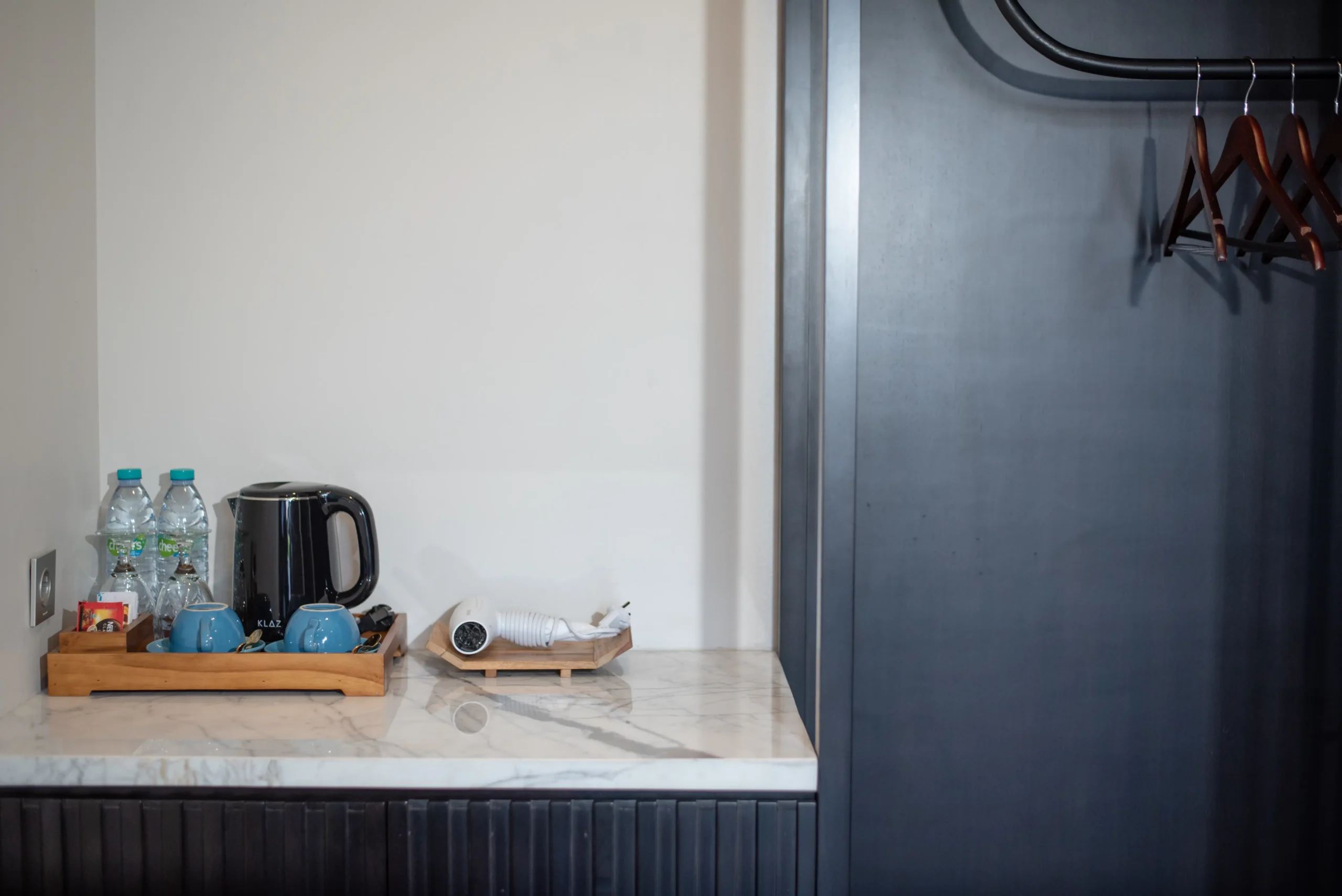 Experience elevated comfort in the Suite Room, designed to provide a refined stay for both leisure and long-stay travelers. Spanning 32 square meters, the room features a super-king bed, a cozy seating area with a sofa, and a flat-screen TV for your entertainment. A dedicated workspace and dining corner add convenience for guests seeking both relaxation and productivity.
